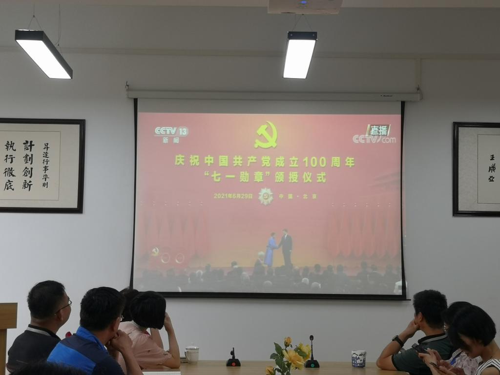 6月29日,在中国共产党百年华诞即将到来之际,庆祝中国共产党成立100周年“七一勋章”颁授仪式在北京人民大会堂隆重举行。上午10时,公司党委组织学院没有考试任务的师生共同收看了“七一勋章”颁授仪式的直播盛况。