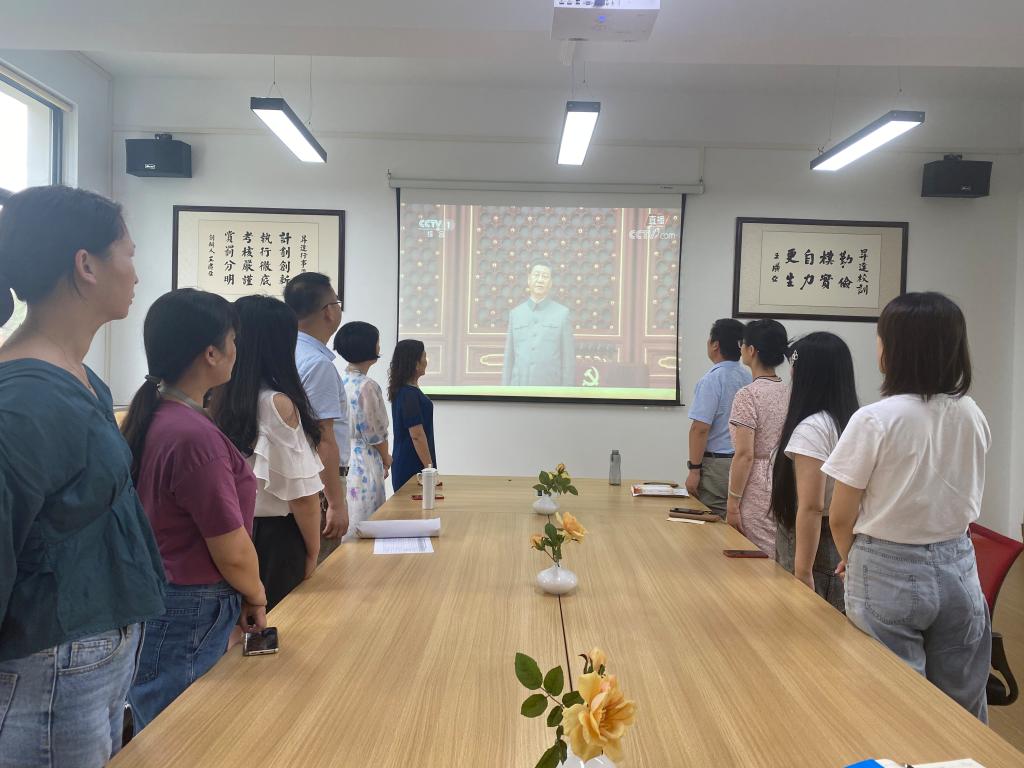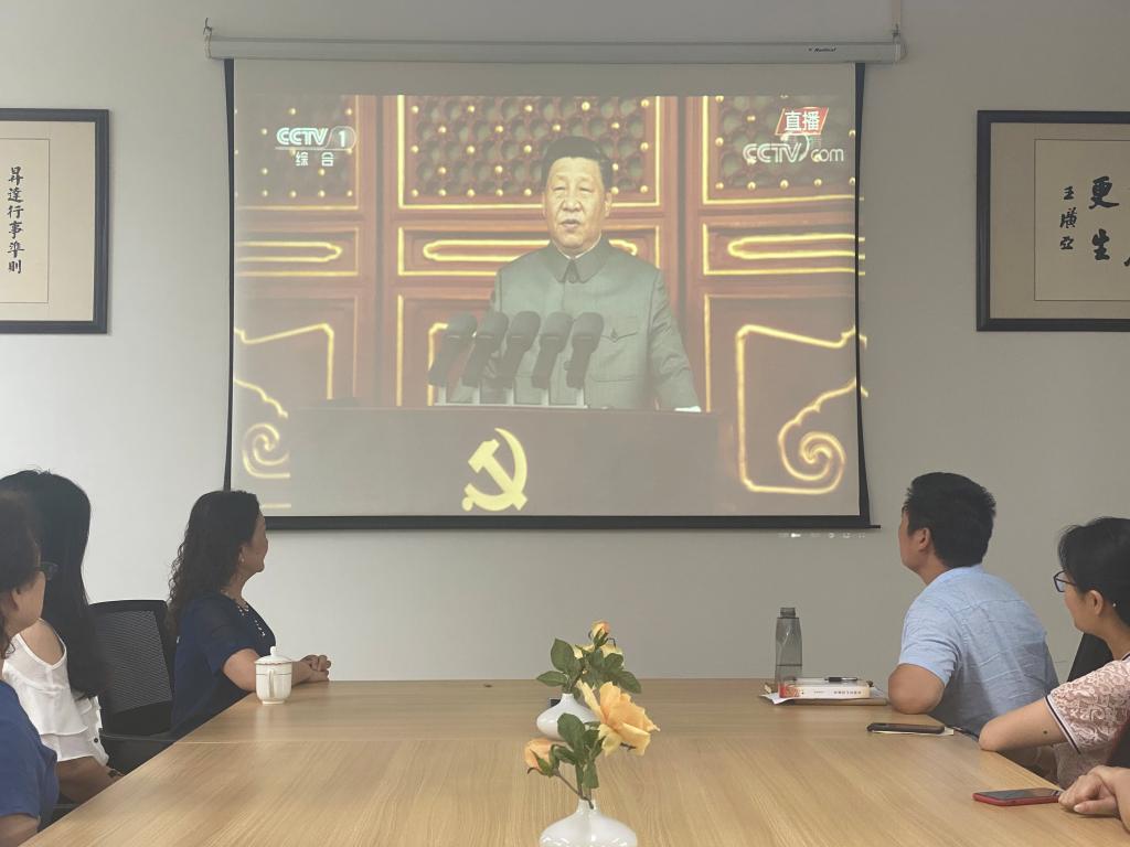 江河万里,七月的丰碑耸立不朽,神州大地,一百年的党史辉煌灿烂。7月1日上午8时,庆祝中国共产党成立100周年大会在北京天安门广场隆重举行。中共中央总书记、国家主席、中央军委主席习近平出席大会并发表重要讲话。公司党委组织学院没有监考任务的教职工在教一楼206会议室集中收听收看直播实况,没有考试任务的员工也通过各种途径收听收看大会直播并开展交流研讨活动。