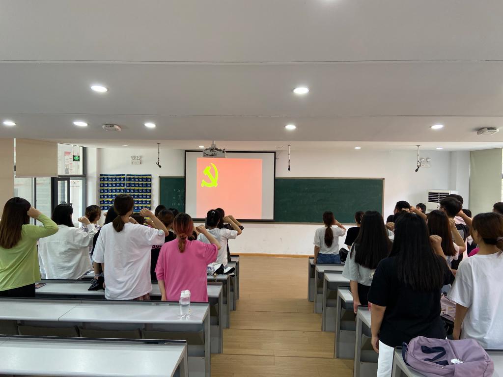 会议首先进行了党员重温誓词活动,全体党员在赵丽红老师的带领下,面对党旗庄严宣誓,重温入党誓词,坚定理想信念。