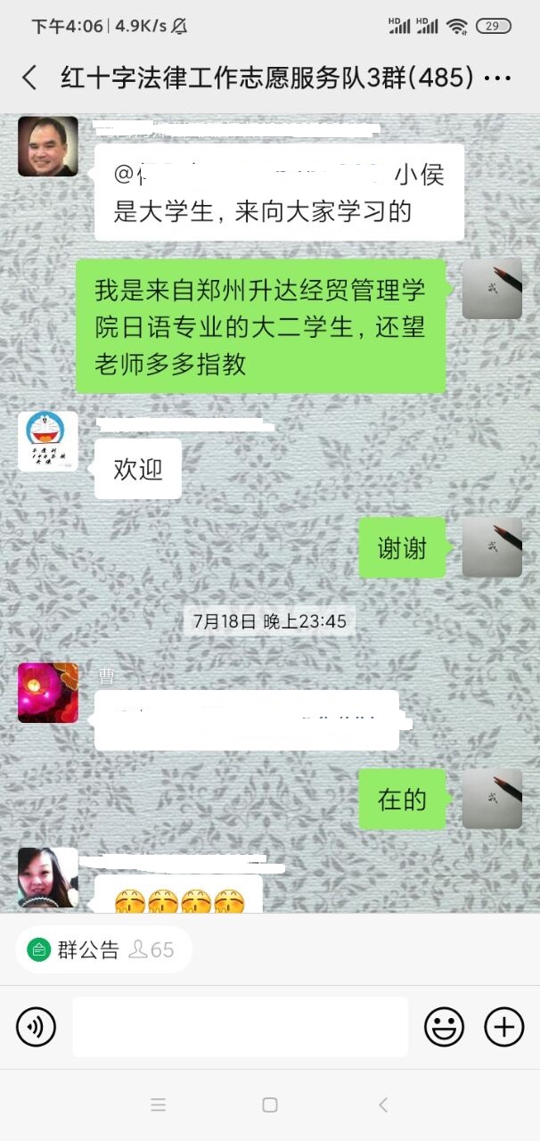 自7月20号以来,河南省郑州市出现了持续强降雨的天气,引发严重的城市内涝情况。在红十字法律志愿者的积极号召下,侯跃轩在群内通知查询各地区汛情信息,了解到西彩社区与周围地势相对偏低,深受暴雨其害,急需招募志愿者。,与当地社区工作人员联系,作为一名志愿者献出自己的一份力。