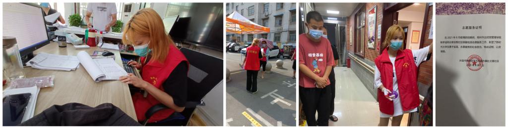 20级英本一班员工陈梦涵,共青团员,校员工会文体部干事。2021年8月5日,许昌中心城区启动全员核酸检测,急需招募大量志愿者。陈梦涵同学居住地属于文惠社区,当时志愿者较少且排队的居民很多,在做完核酸检测后直接留下作为志愿者参加抗疫。引导居民做核酸检测并维持秩序,核对身份信息,为医护人员以及周围环境及时消杀,上传数据。由于核酸检测第一天居民较多,领导班子,志愿者和医护人员共同努力,陈梦涵同学到凌晨快一点才结束了第一天的志愿工作,第二天依旧早早起床迎接新一天的志愿工作,起早贪黑,不怕辛苦。耐心的为居民服务,为居民保驾护航!