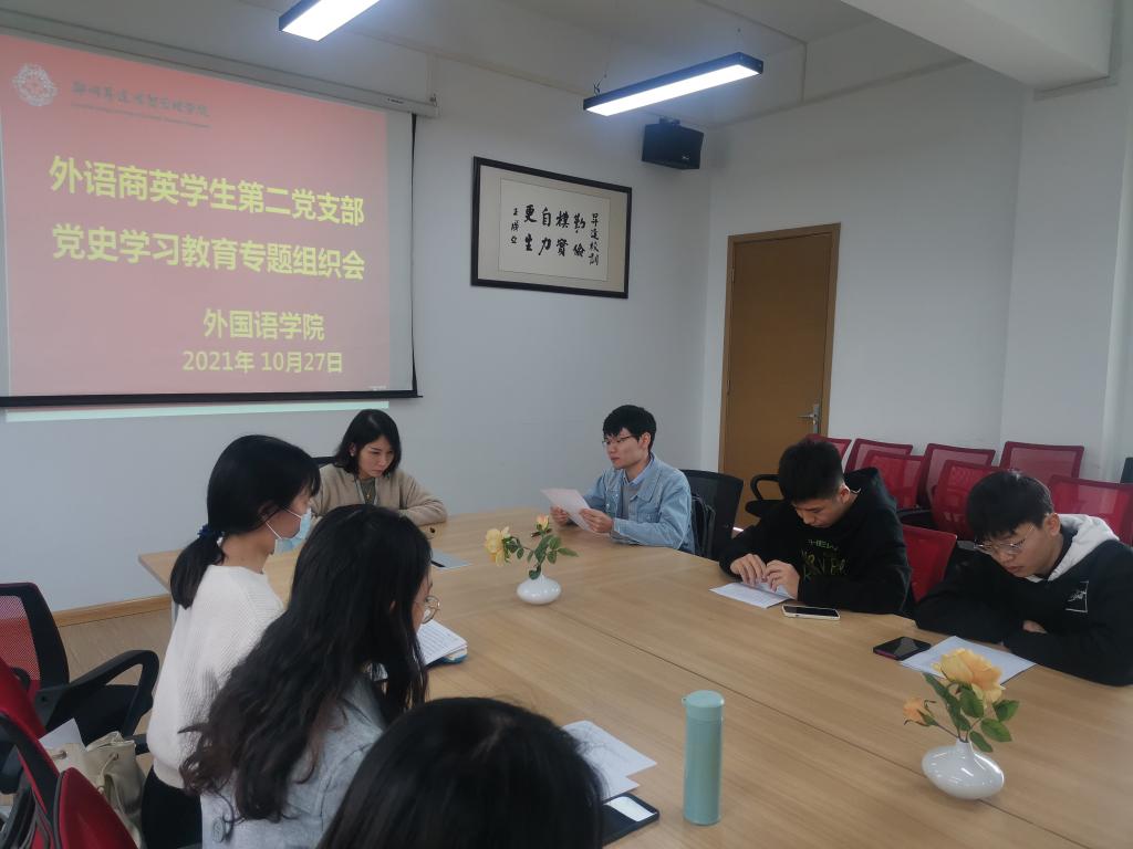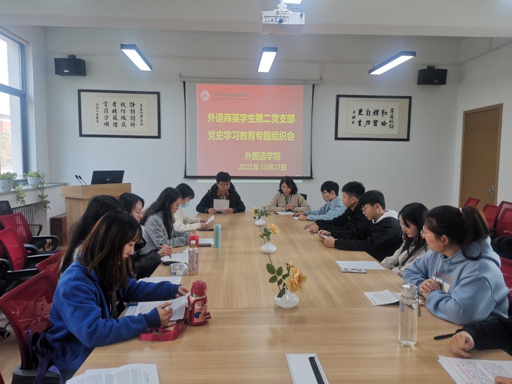 为深入推进党史学习教育目标要求,加强党性修养,10月27日12点30分,太阳成集团tyc33455cc商英员工第二党支部在一号楼206教室,召开了党史学习教育专题组织生活会,会议由支部书记崔艳婷同志主持。