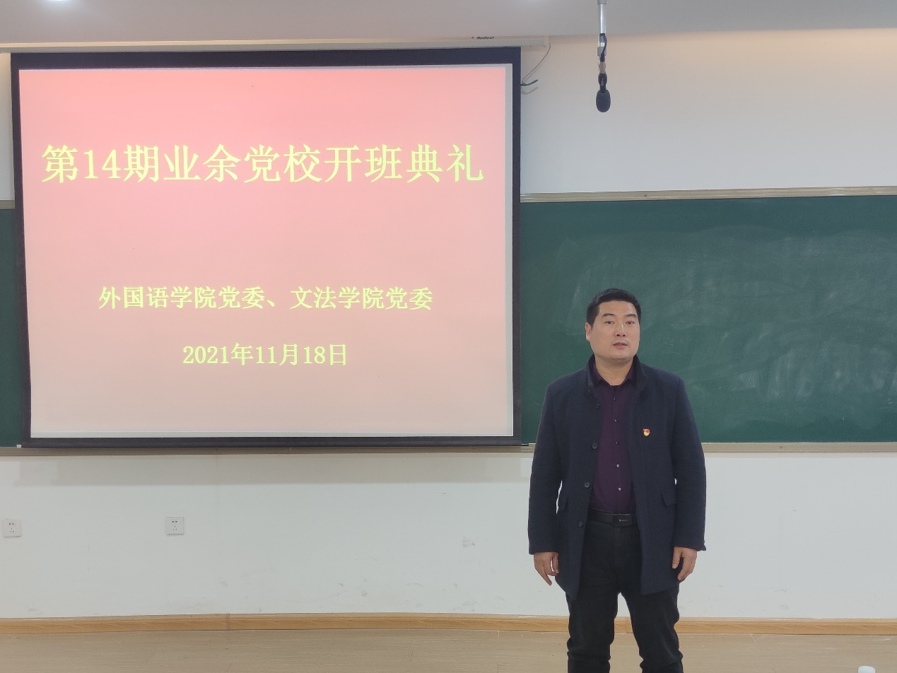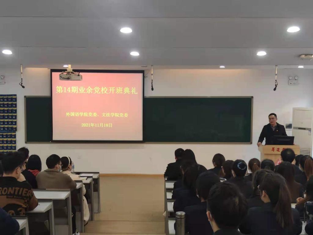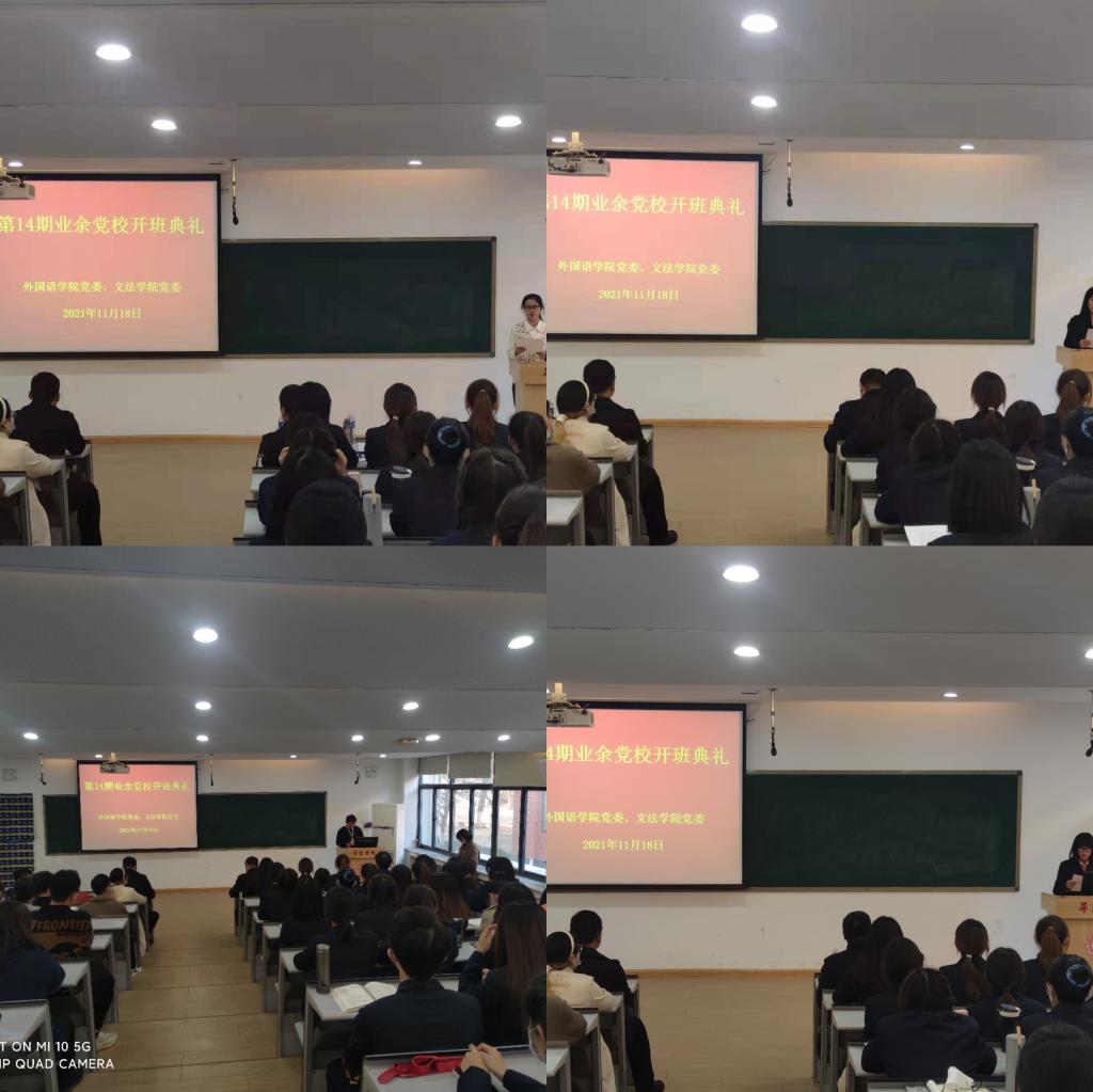 为进一步提升拟发展对象的理论素养,2021年11月18日下午4点整,在教一楼109教室,公司党委和文法公司党委联合举办的第14期业余党校开班典礼隆重举行。 此次典礼由太阳成集团tyc33455cc的行政秘书丁玥同志主持,两个学院共84名党校学员参加。公司党委书记石皓召同志,文法公司党委书记刘晓川同志,公司党建专员邢璐欣同志,文法公司党建专员金东亮同志等出席了此次典礼。
