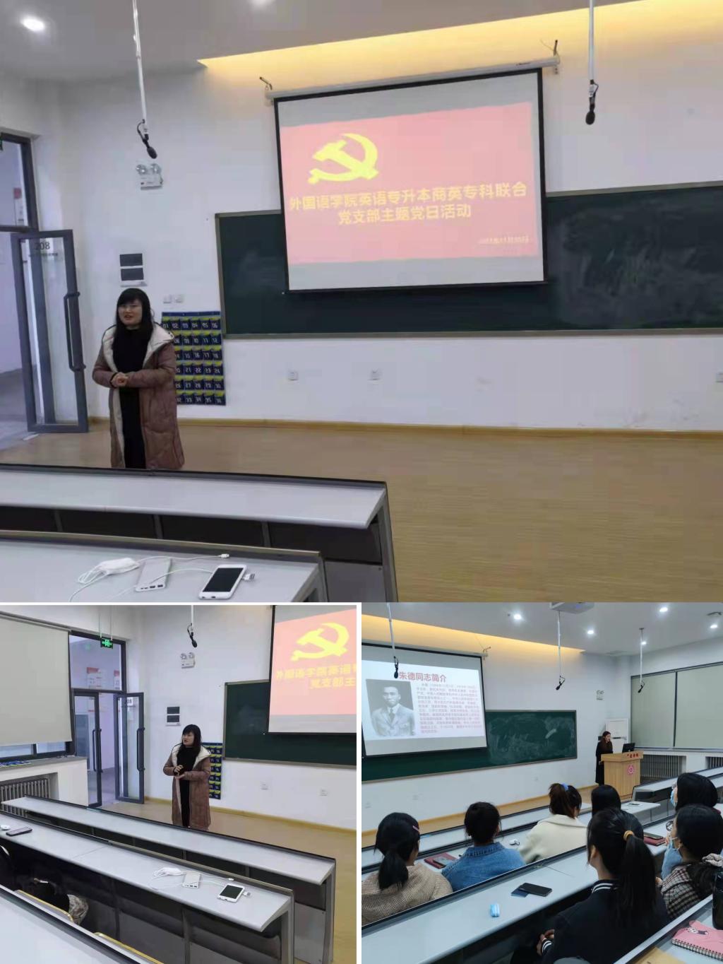太阳成集团tyc33455cc“学百年党史、庆百年华诞”系列活动(二十九) 英语专升本商英专科联合党支部开展“我为优秀共产党代言”主题党日活动