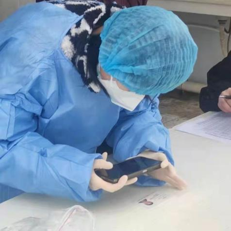 寒假期间,疫情突发的严重起来,在收到了街道办事处关于疫情防控需要志愿者的公告时,看到消息之后她第一时间找到负责人,主动地报名参加到疫情防控工作中。她所负责的工作就是布置核酸检测现场,配合医生的检测工作,拿着手机扫父老乡亲们提前预约好的核酸检测码,按10个一组的顺序录入到检测系统当中,核酸检测的整个过程手都要一直露在外边一直扫码。在寒冷的冬季,有数次寒风吹过,冻僵拿着手机几乎不能屈伸的手指坚持录入,天气很冷但是她却说:“虽然天气很冷,但是看到大家都很配合,在疫情期间能够用自身的实际行动为大家服务,我内心也感到很温暖。”
