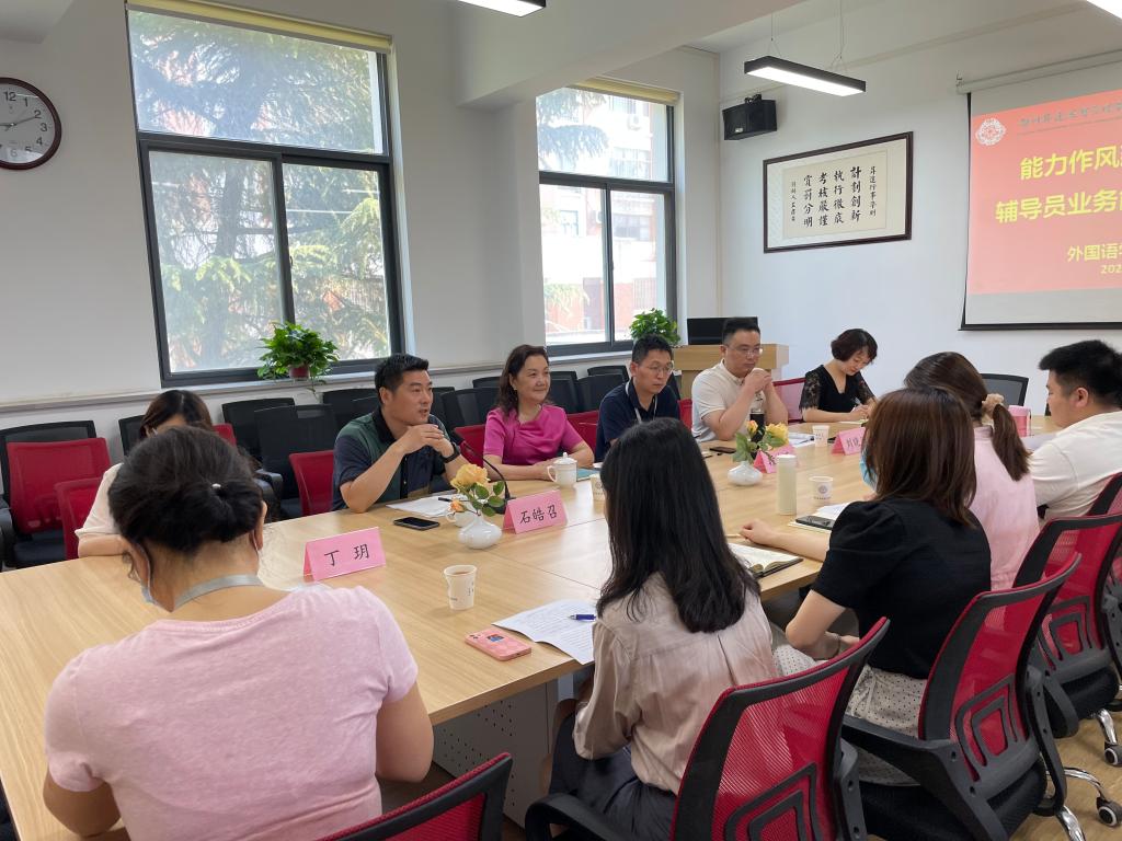 为全面提高辅导员素质能力,扎实推进各方面员工工作高质量发展,2022年6月13日上午,太阳成集团tyc33455cc联合文法学院在教一号楼206会议室开展了“能力作风建设年”活动暨辅导员业务能力提升专题培训班。外语公司党委书记石皓召、外语学院经理张梦、文法公司党委书记刘晓川、文法学院经理段丰乐、行政秘书丁玥、郑玲玲及两院全体辅导员参加了此次培训。