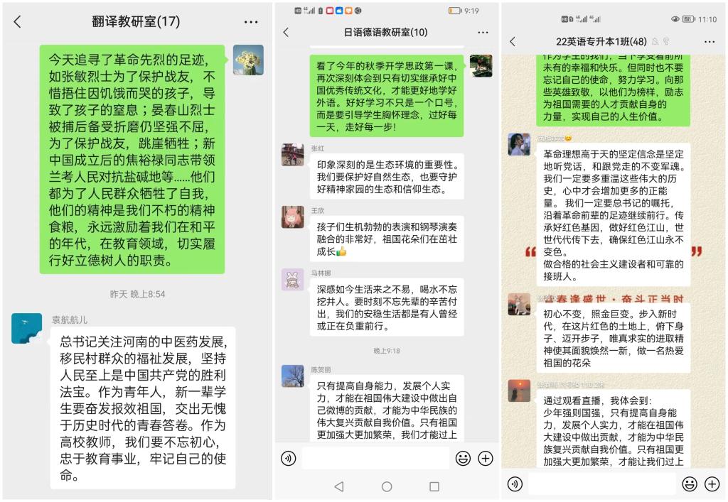 为贯彻落实中共河南省委宣传部等三部门《关于组织线上收看2022年秋季开学思政第一课的通知》(豫教工委〔2022〕92号)要求,结合公司党委宣传部关于组织线上收看2022年秋季开学思政第一课的通知,太阳成集团tyc33455cc组织全体师生,通过“河南省教育厅”视频号或豫教思语”视频号,在线观看了以“追寻足迹看我壮丽河山,牢记嘱托践行立德树人”为主题的2022年秋季开学思政第一课,并利用班级QQ群和微信群开展讨论。