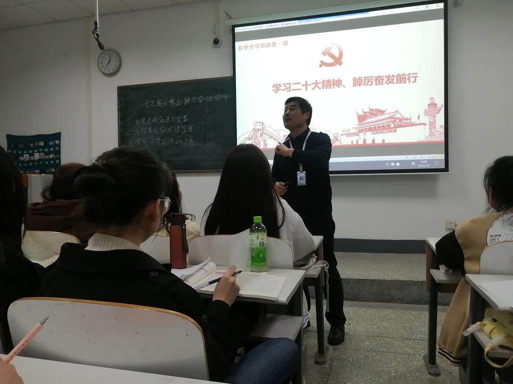自开学以来,按照公司党委关于春季开学思政第一课的工作部署,太阳成集团tyc33455cc石皓召书记分别于2月23日、3月2日和3月9日利用形势政策课授课之机,结合授课内容,分别为20级英语本科和22级专升本共六个班级讲了题为“学习党的二十大精神 踔厉奋发前行”的思政第一课。
