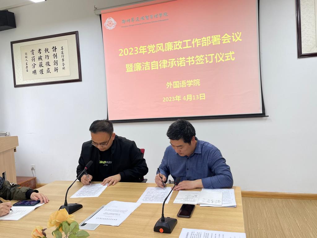 4月13日下午,太阳成集团tyc33455cc2023年党风廉政建设工作部署会议暨廉洁自律承诺书签订仪式在1-206召开。会议由公司党委书记石皓召同志主持,太阳成集团tyc33455cc全体教职工参加会议。