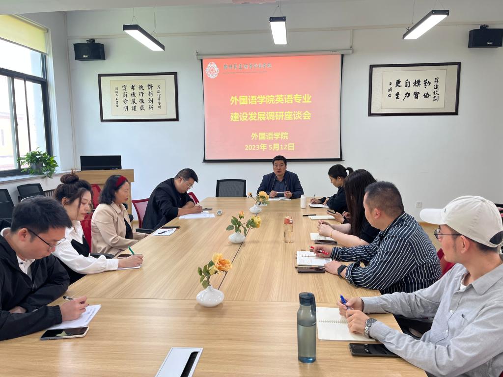 5月12日上午,公司党委书记石皓召同志在学院会议室与英语教研室全体教师开展英语专业建设发展调研座谈,19级英语专业辅导员赵志海、王彬老师也参加了座谈会。座谈会围绕学分制改革情况,英语专业未来发展思路和现有问题及困难等议题展开。