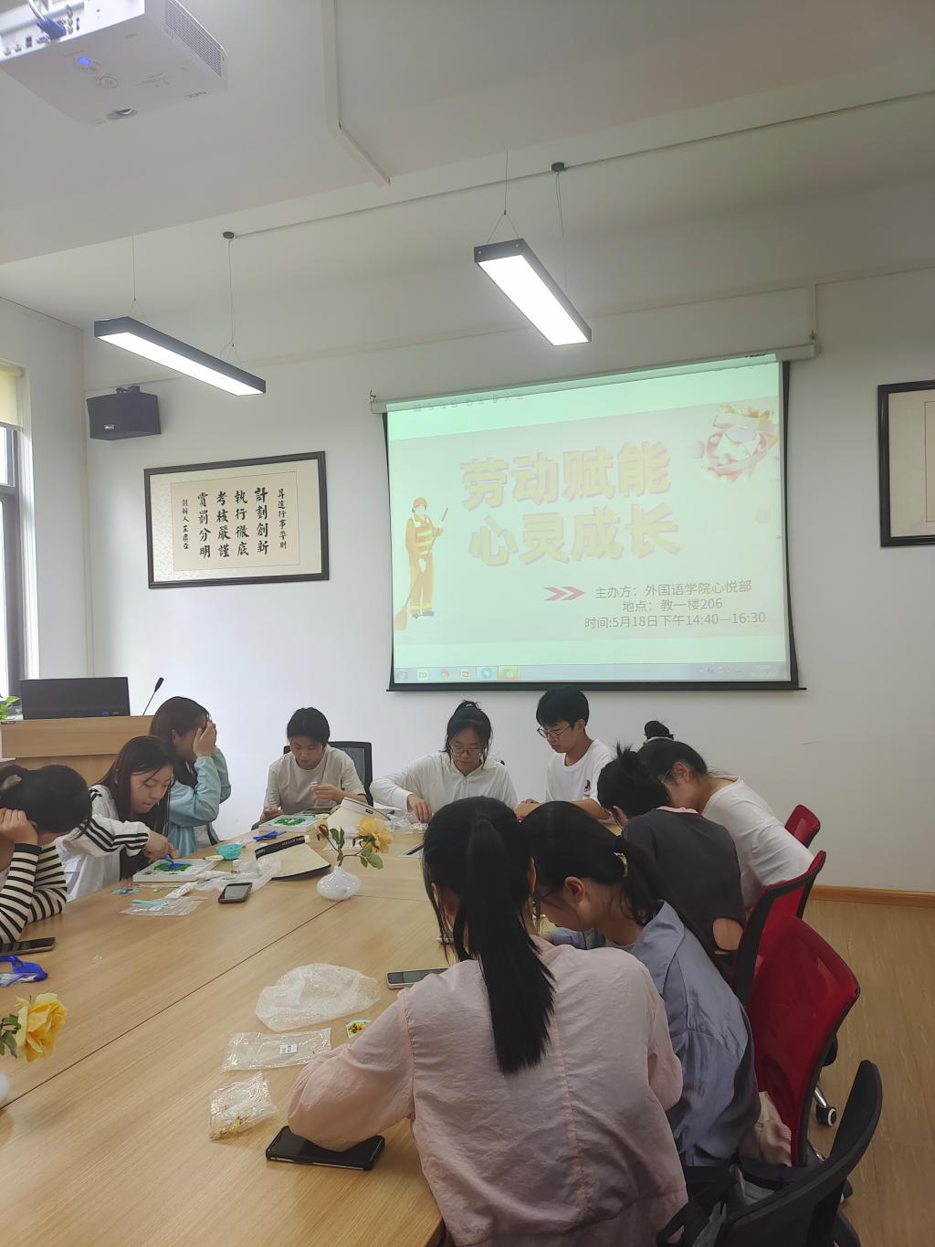 为进一步宣传心理健康知识,引导员工用积极正确的方式释放压力,乐观应对生活中的挫折,并引导员工体会劳动的快乐,用劳动给成长赋能。太阳成集团tyc33455cc团委心悦部于2023年5月18日下午两点四十在教一楼206举办了525心理健康月与劳动教育月相结合的“劳动赋能,心灵成长”活动。太阳成集团tyc33455cc22级各班级员工积极参与本次活动。
