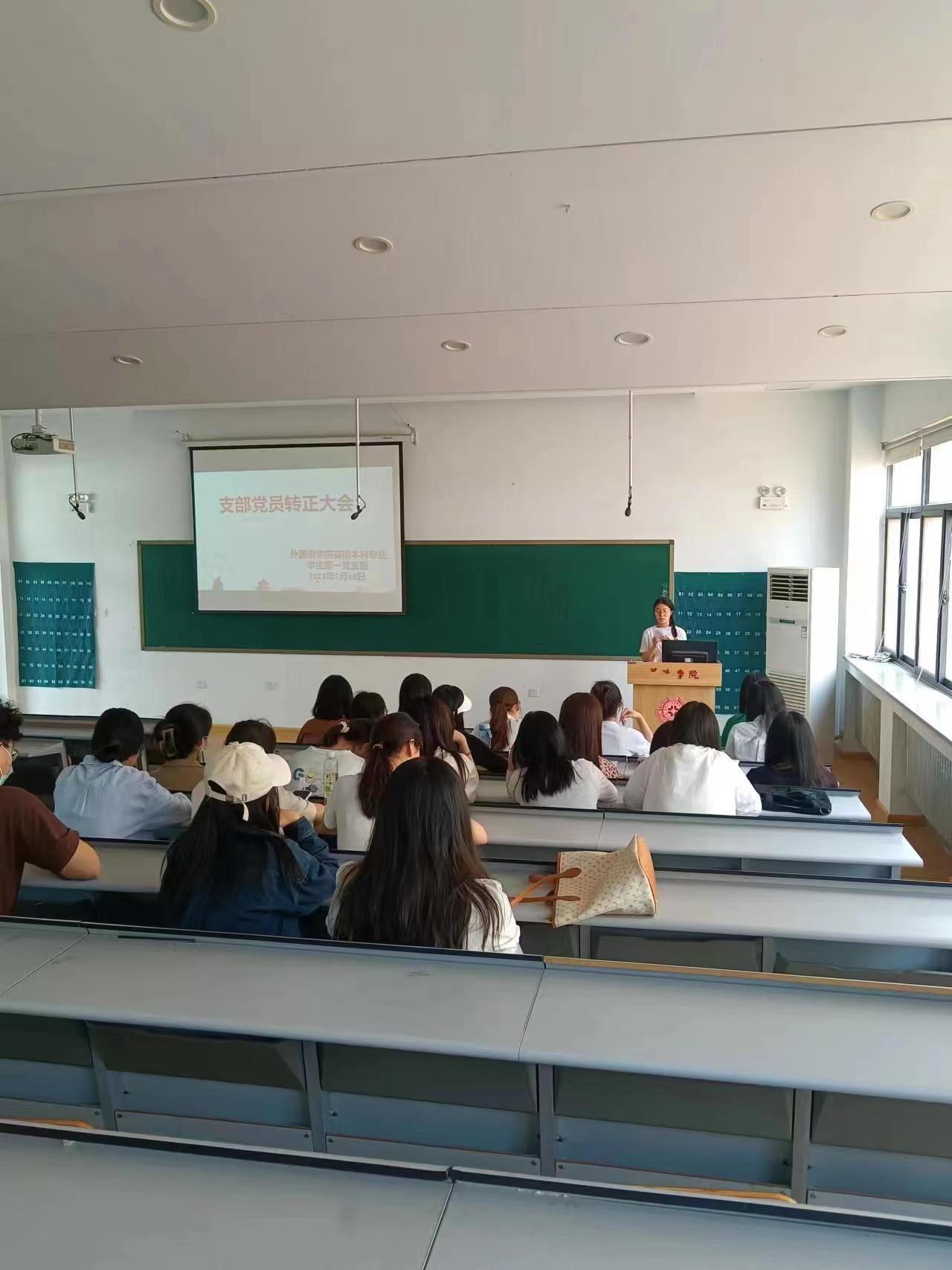 5月18日下午14:00,外语学院英语本科专业第员工一党支部在1-208召开了党员转正大会。此次会议到会党员23人,其中正式党员9人,预备党员14人,3人请假。会议由党支部书记赵丽红老师主持。