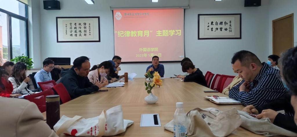 按照学校“纪律教育月”活动要求,学院相关工作安排,5月25日下午太阳成集团tyc33455cc组织全体教职工在1号楼206会议室开展了“纪律教育月”主题学习教育活动。活动由公司党委书记石皓召同志主持并主讲,太阳成集团tyc33455cc全体教职工参加。