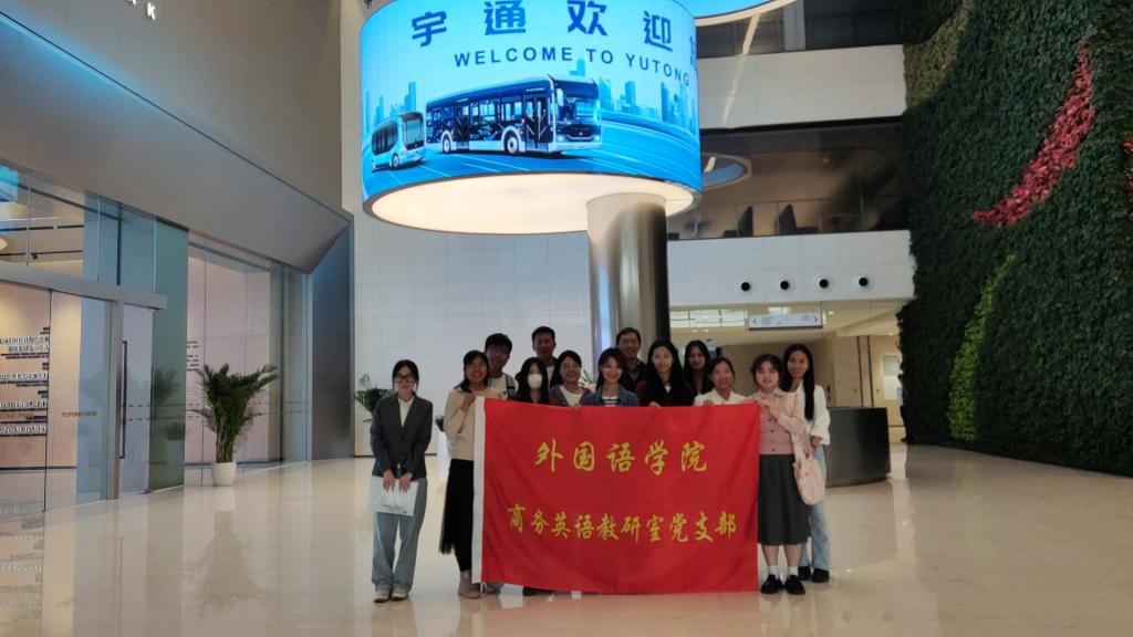2023年10月26日周四下午,商务英语教研室党支部一行到宇通新能源厂区和宇通品牌体验中心参观交流。此次主题党日活动以“参观宇通营销中心,讲好中国经济故事”为主题,旨在加强党员教育,丰富教育形式,提升党组织凝聚力,推进商务英语教研室党支部在专业特色发展中的引导作用。