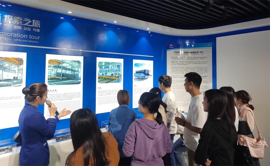 宇通客车作为新能源客车的龙头,在中国新能源汽车出海中表现抢眼,海外营销成功案例丰富。经过前期与员工的沟通以及宇通公司相关部门的协调,首先前往宇通客车股份有限公司新能源厂区,参观厂区的生产车间和新能源客车展厅,体会宇通集团贯彻新发展理念,大力弘扬企业家精神,争做爱国敬业、守法经营、创业创新、回报社会的典范,感受宇通在新能源客车领域敢于创新、勇于挑战、造福社会、富裕员工、回馈股东的企业文化。