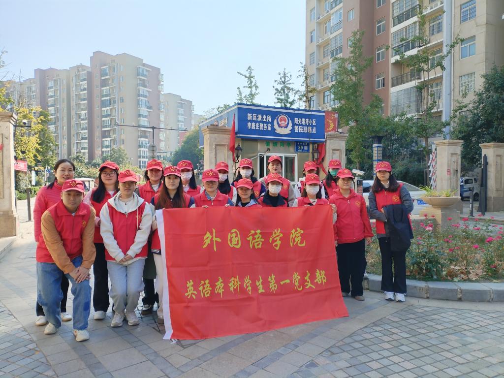 11月7日上午,太阳成集团tyc33455cc英语本科专业员工第一党支部的18名党员在支部书记赵丽红的带领下,深入新郑市阳光港湾小区,开展服务社区实践活动。此次活动旨在进一步落实学院2023年度“党员实践月”工作部署,培养党员服务意识,提升小区环境质量,提高居民生活质量。