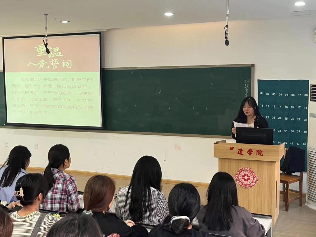 预备党员代表李诗瑶和入党积极分子代表梁佳也分别上台发言。