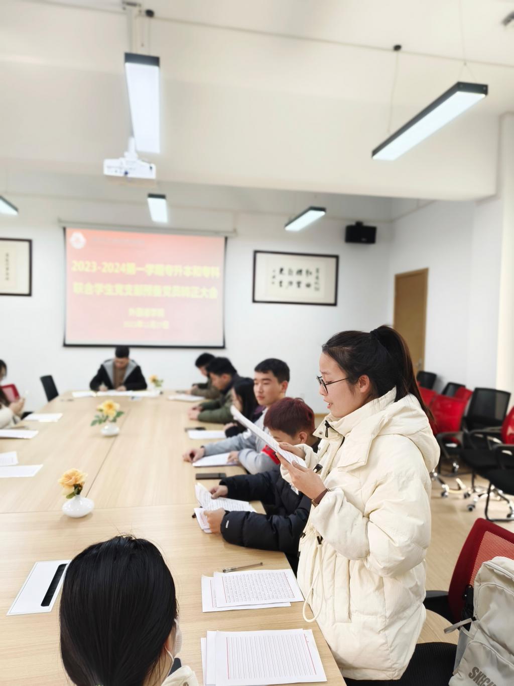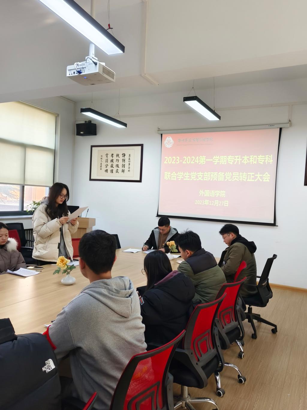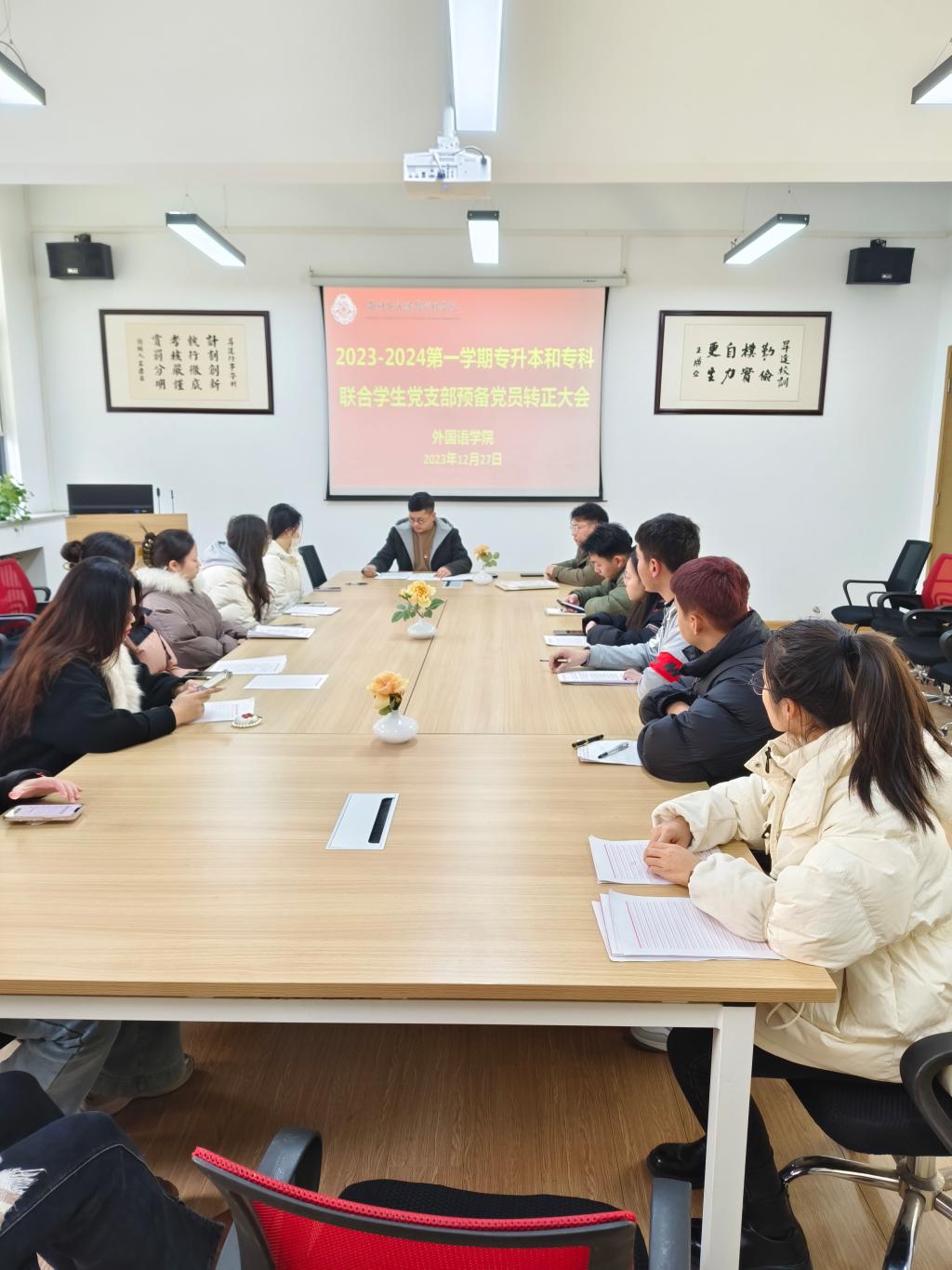 太阳成集团tyc33455cc专升本和专科联合员工党支部召开 2023-2024第一学期预备党员转正大会