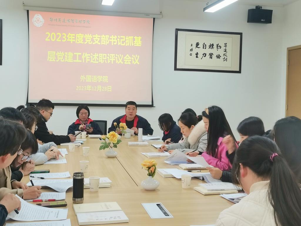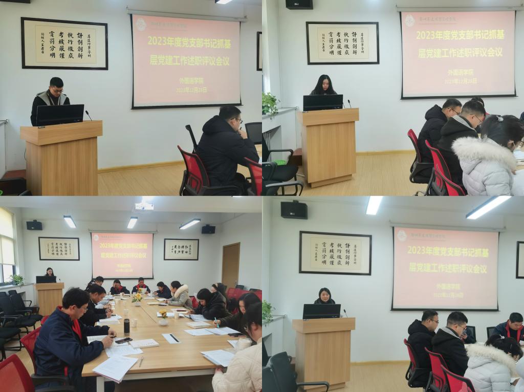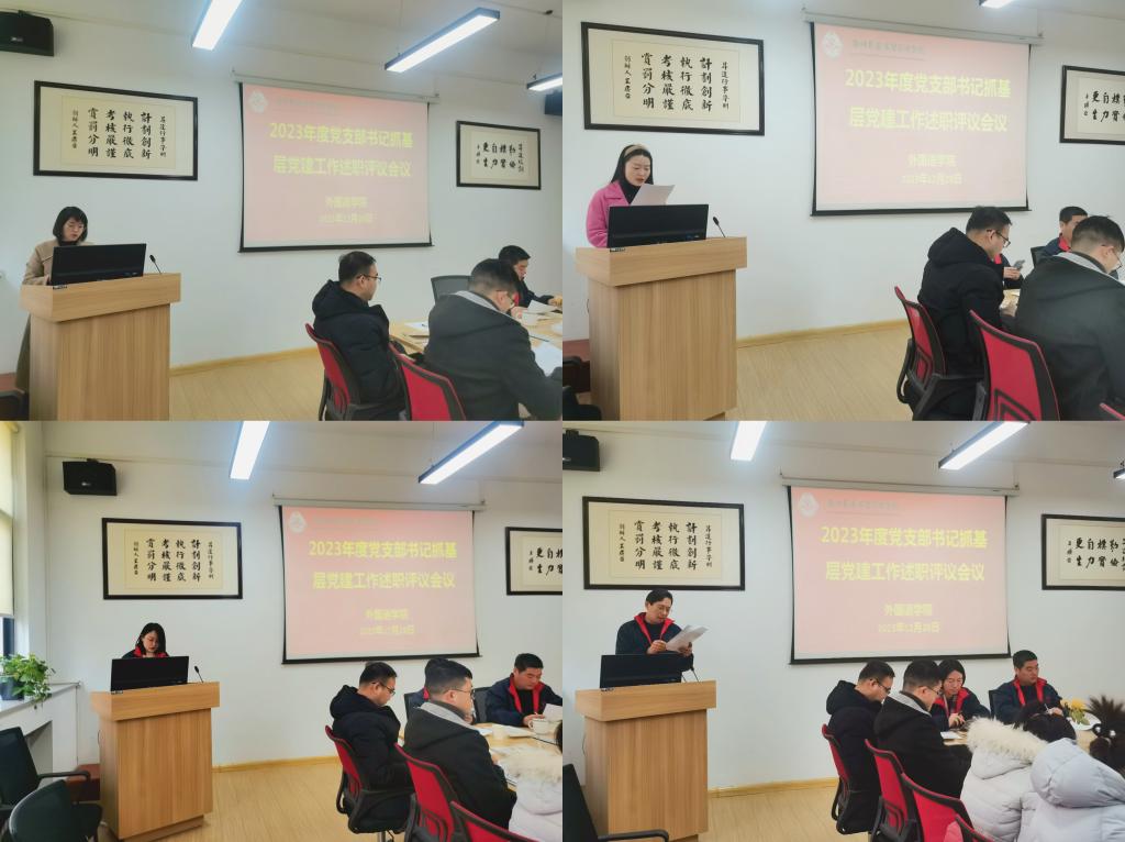 会上,英语教研室党支部、商务英语教研室党支部、翻译、日语教研室党支部、专升本和专科联合员工党支部、英语本科员工第一党支部、英语本科员工第二党支部、商英本科员工党支部、日语本科员工党支部、翻译本科员工党支部的党支部书记依次分别宣读了党支部书记抓基层党建的述职报告,全面总结了作为党支部书记,在过去一年中就组织建设、思想建设、作风建设等方面的工作成果、经验和问题。