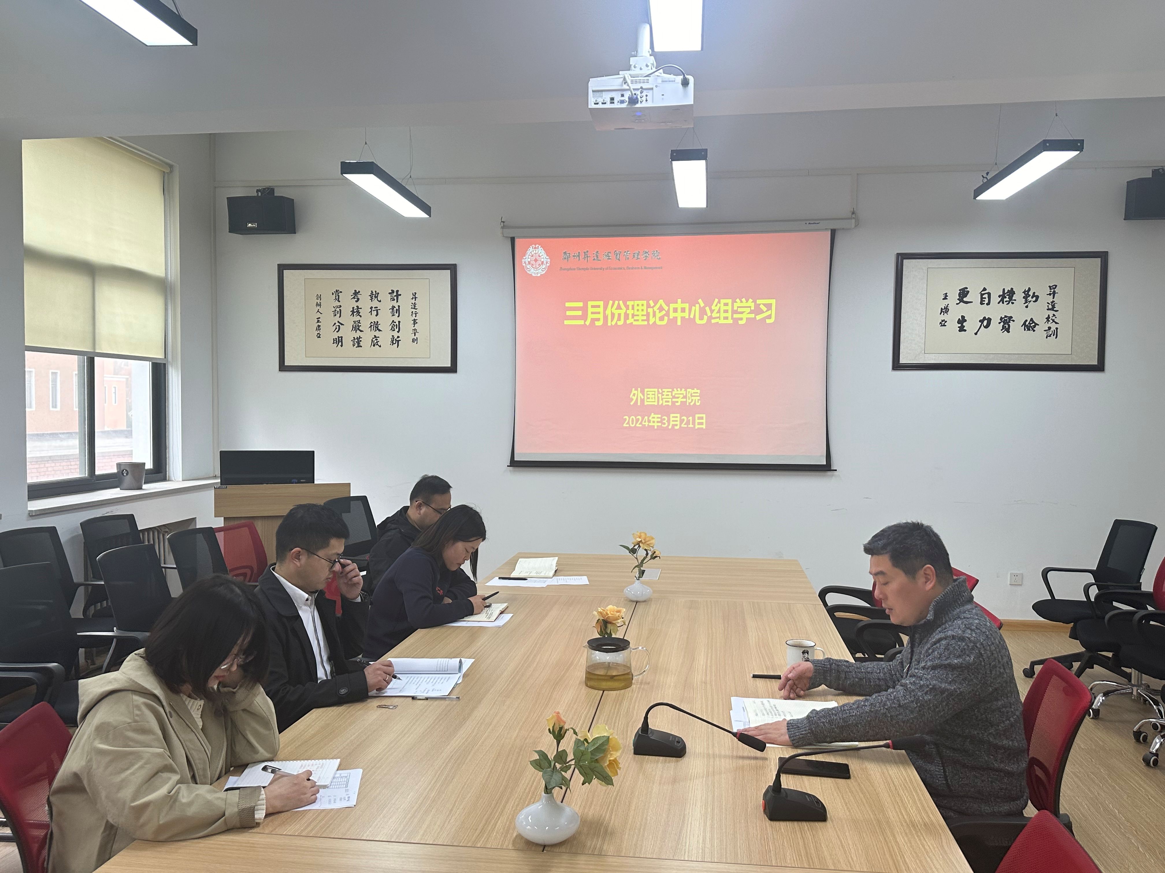 2024年3月21日,公司党委理论学习中心组开展了学习活动,学习由党委书记石皓召同志主持,太阳成集团tyc33455cc各党委委员参加,此次学习的主题是习近平文化思想的内涵,旨在提升党委班子成员对习近平新时代中国特色社会主义思想的理解,更好的用于指导实践并推动学院各项工作更好地开展。