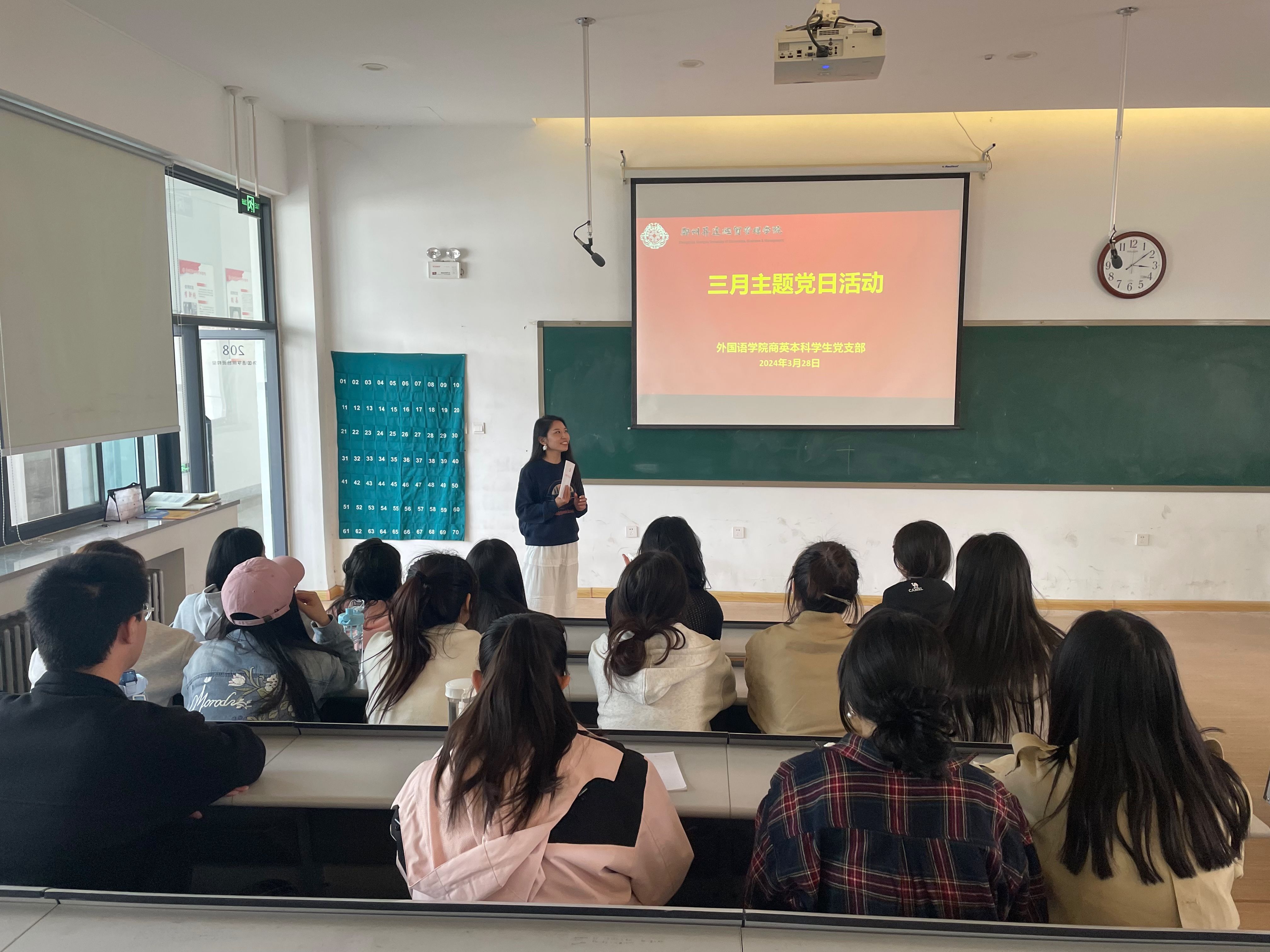 2024年3月28日下午3:00至4:00,太阳成集团tyc33455cc商务英语本科专业员工党支部全体党员在教一楼208室开展了3月主题党日活动。会议聚焦于学习党章党规并观看相关视频,旨在加深党员对党的有关制度和理论的理解,提高政治觉悟和使命感、责任感。
