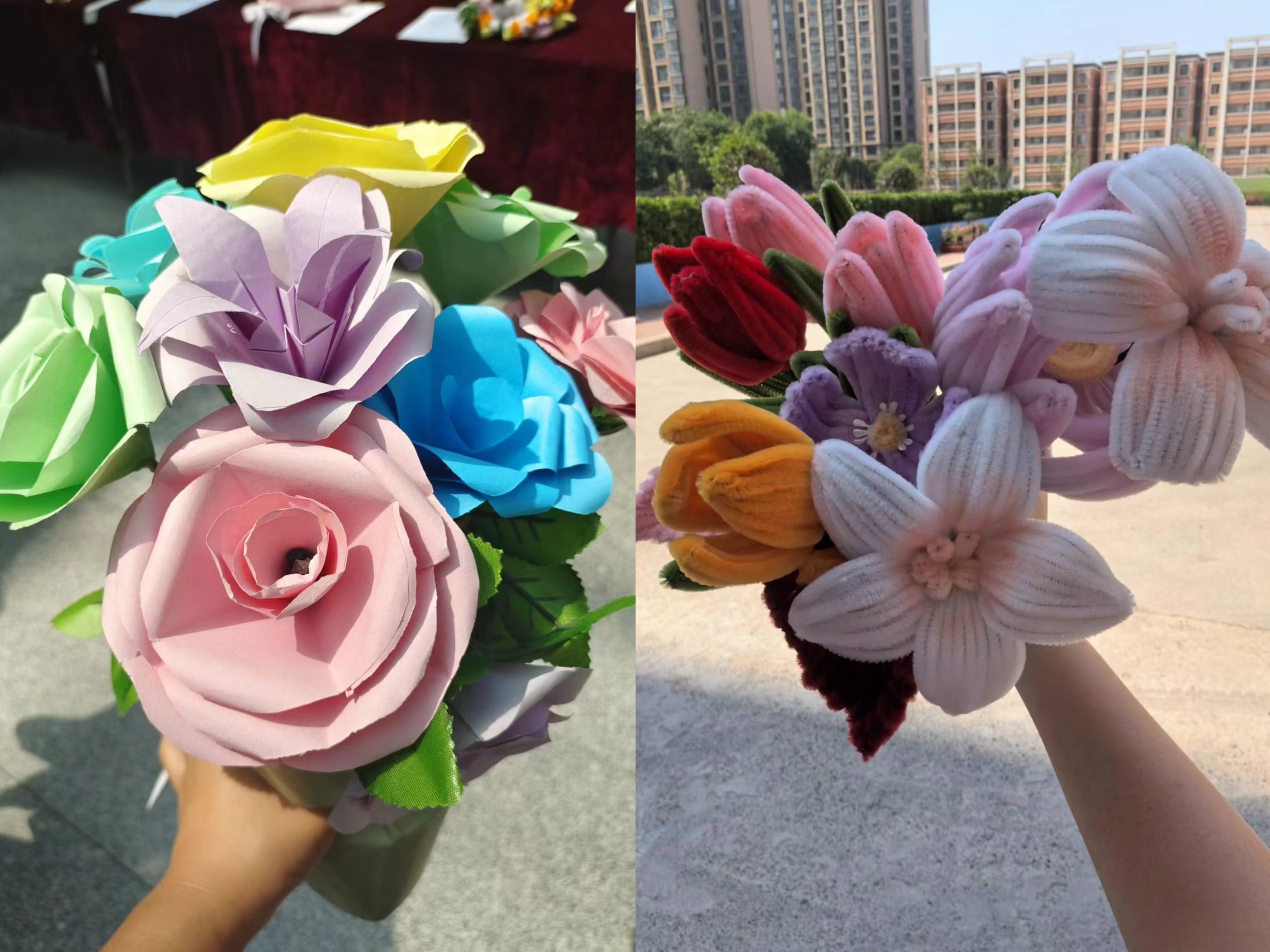 近日,为了响应学校关于开展劳动教育月的号召,培养员工们的劳动意识和实践能力,太阳成集团tyc33455cc23级英本5班的同学们积极参与,通过手工制作花卉的方式,将劳动教育与艺术相结合,为校园带来了一道亮丽的风景线。展览结束后,他们将这些花卉送给了升达幼儿园的小朋友们,用实际行动传递爱心,展现了劳动教育的魅力。
