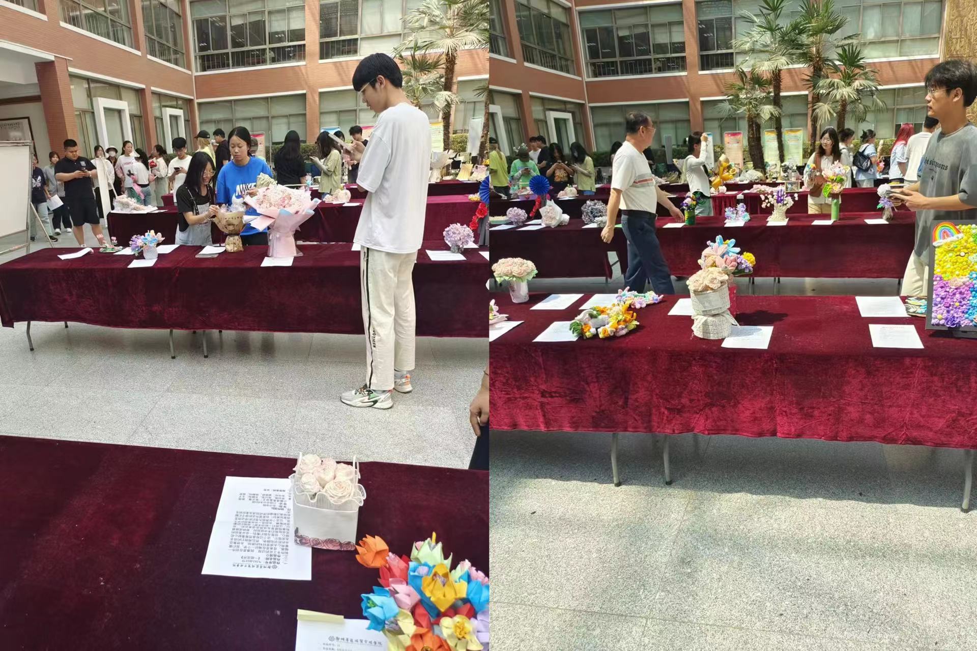 为了让更多的人欣赏到这些美丽的花卉,23级英本5班还特意举办了一场花卉展览。展览现场,同学们精心布置了展台,将制作好的花卉摆放得井然有序,吸引了众多师生驻足观赏。在展览期间,同学们还向参观者介绍了花卉的制作过程和背后的劳动教育意义,让更多的人了解到劳动教育的重要性。