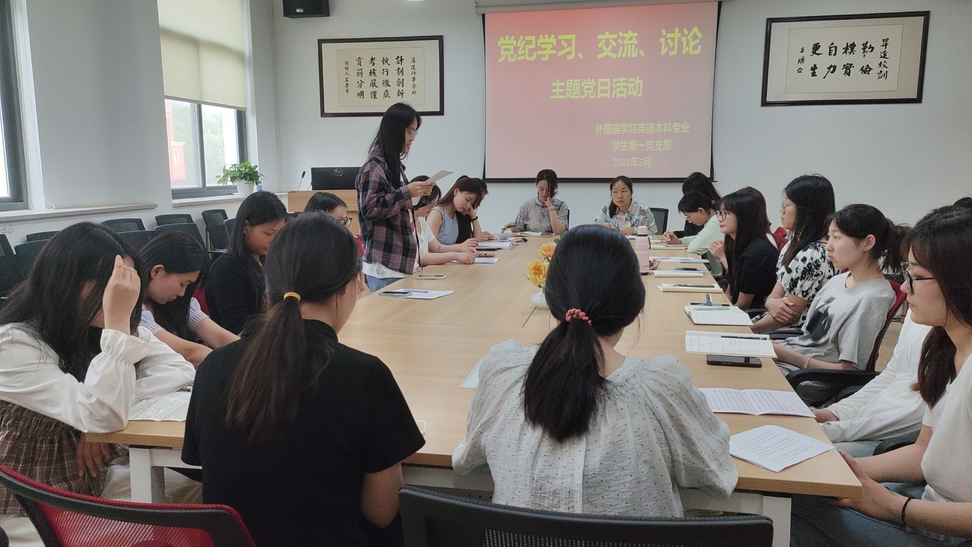 5月17日下午14:00,英语本科专业员工第一党支部在教学1号楼206,召开了党员发展大会,并进行了党纪学习教育的第二次交流讨论。