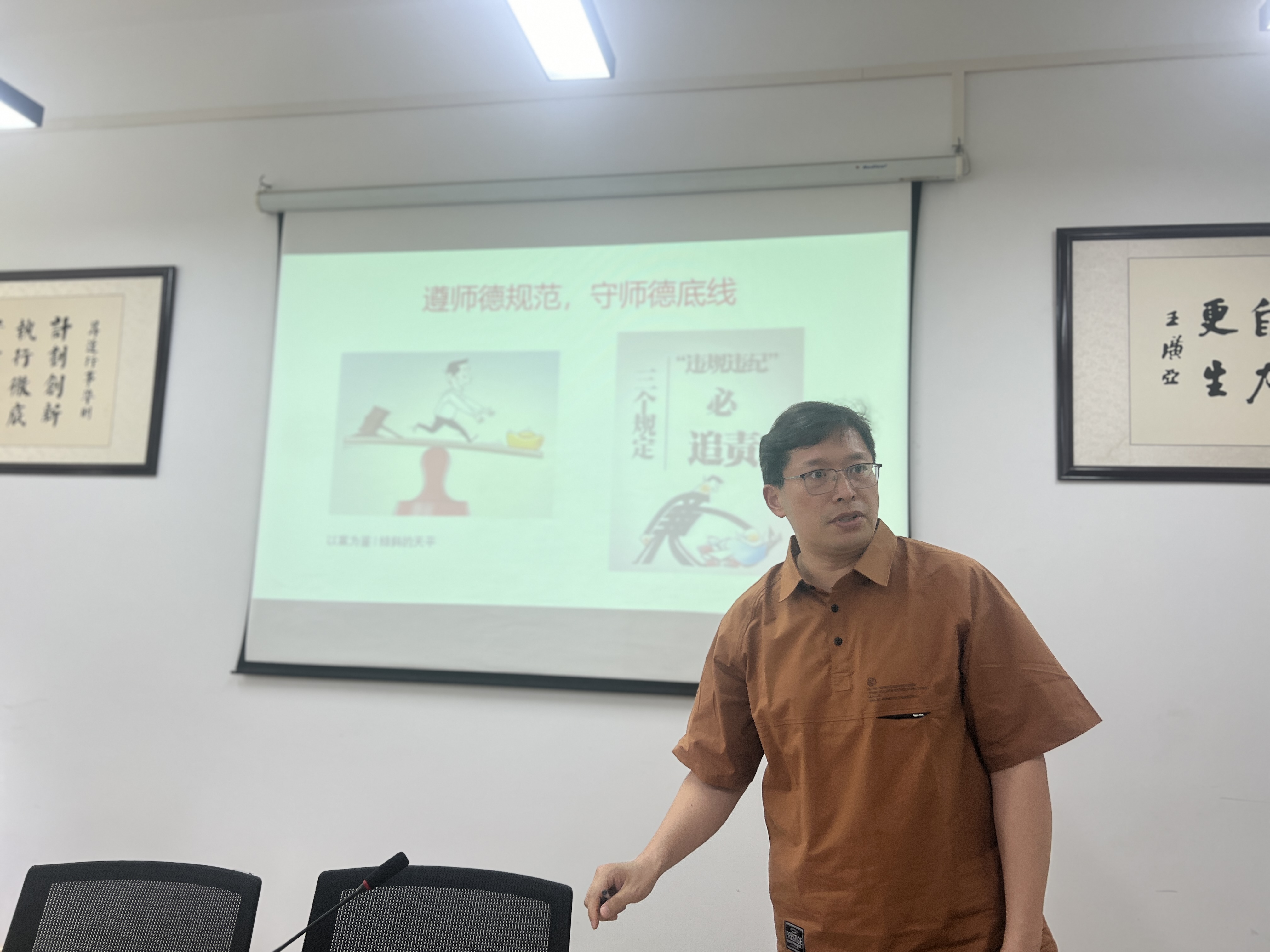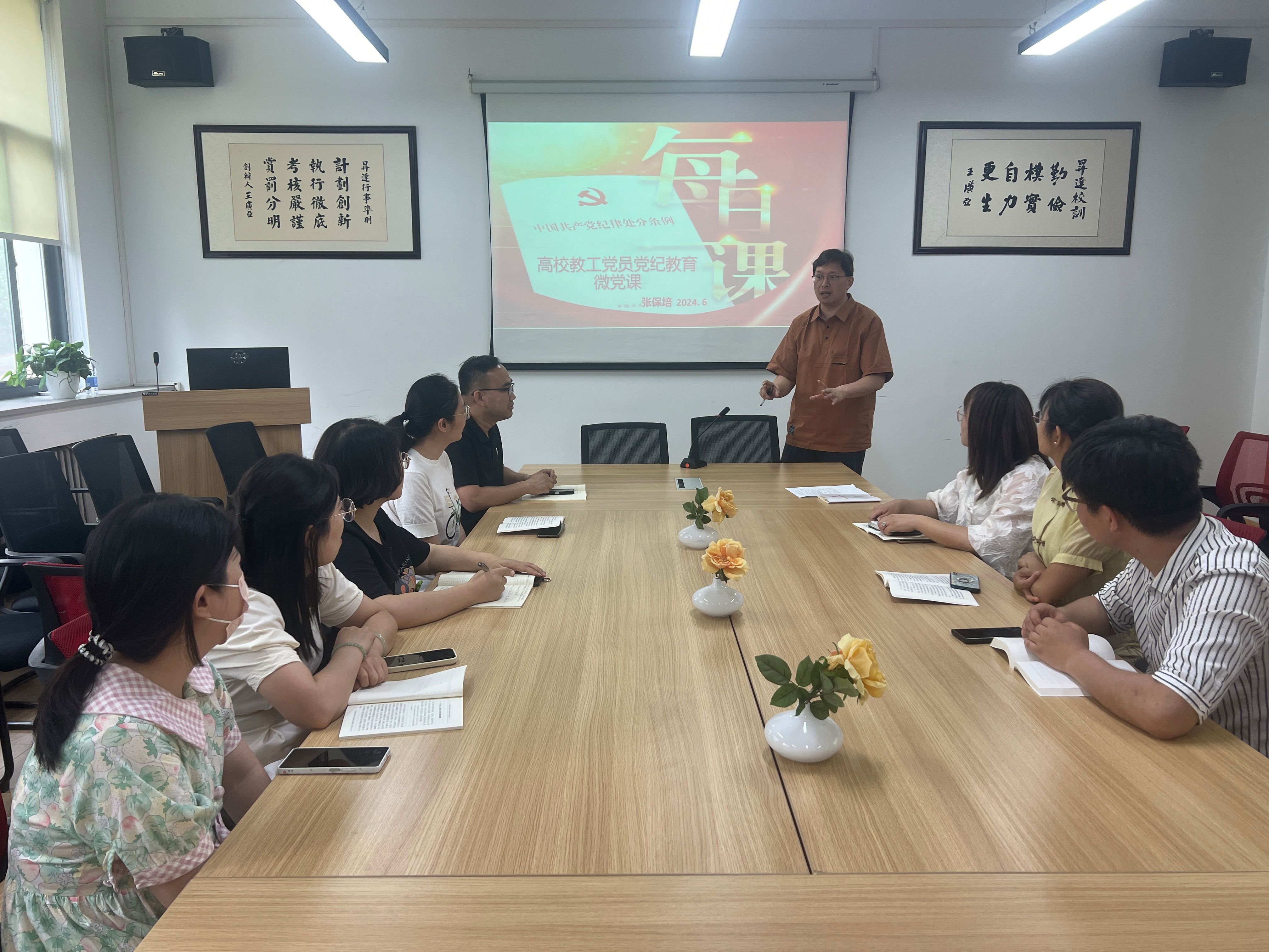 此次微党课学习是根据公司党纪学习教育工作方案开展的系列工作之一,由党支部书记为本支部全体党员上一堂专题微党课。商务英语教研室党支部书记张保培同志,基于刚刚参加的学纪、知纪、明纪、守纪——2024年党纪学习教育专题培训,针对高校教工党员上了一节题目为“以案为鉴,以案明纪,遵师德规范,守师德底线”的微党课。