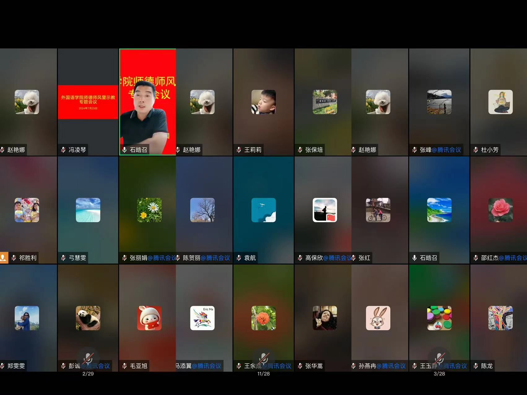 按照学校教师工作部工作部署,太阳成集团tyc33455cc于2024年7月25日下午6时,通过腾讯会议平台召开了“太阳成集团tyc33455cc师德师风警示教育专题会议”。此次会议由公司党委书记石皓召同志主持,王莉莉经理及学院全体教职工参加了此次会议。
