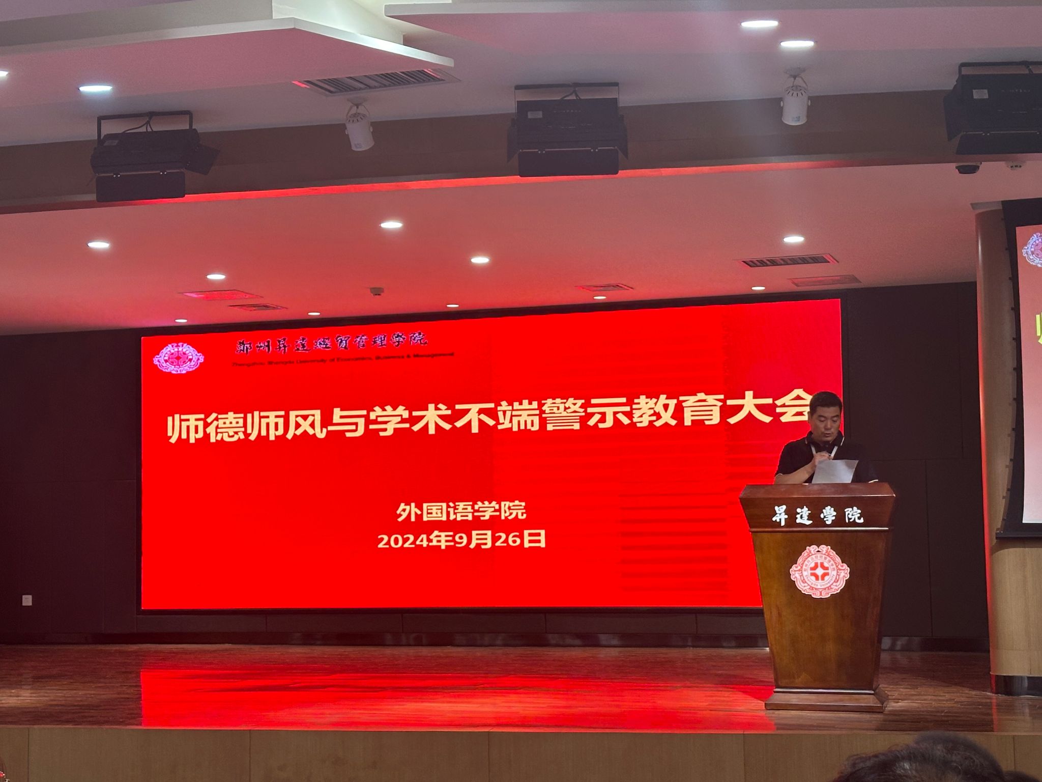 2024年9月26日,太阳成集团tyc33455cc在双创大讲堂召开了“师德师风与学术不端警示教育大会”。会议由党委书记石皓召主持,学院全体教职员参加会议。会议旨在强化师德师风建设,提升教职工对师德师风及学术诚信的认识。