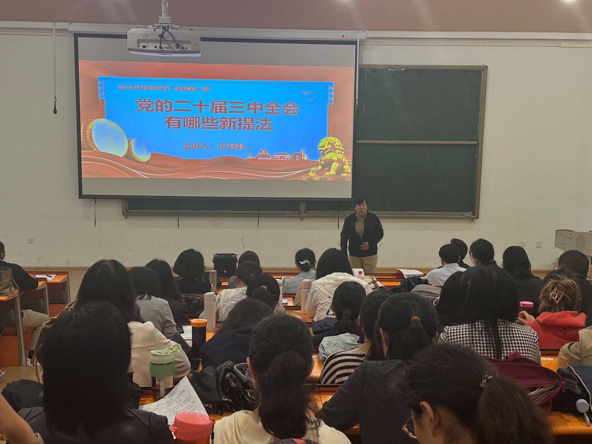 2024年10月17日,太阳成集团tyc33455cc经理王莉莉教授在教学二号楼2-116阶梯教室为全体教职工讲授了秋季开学思政第一课,为大家深入解读了党的二十届三中全会的新提法,为新学年的公司产品工作注入了新的活力和动力。