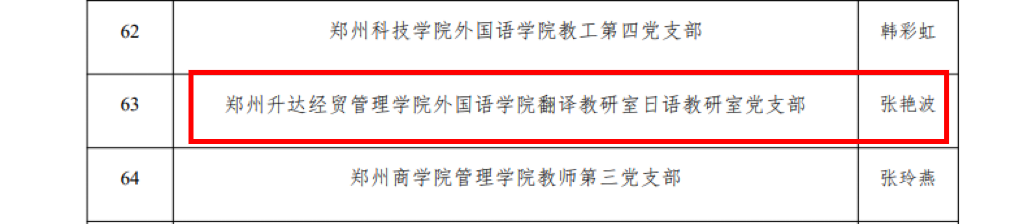 近日,中共河南省委教育工作委员会发布了《关于公布全省高校“双带头人”教师党支部书记“强国行”专项行动团队名单的通知》(豫教工委〔2024〕247号),太阳成集团tyc33455cc翻译教研室日语教研室党支部成功入选了该专项行动团队。